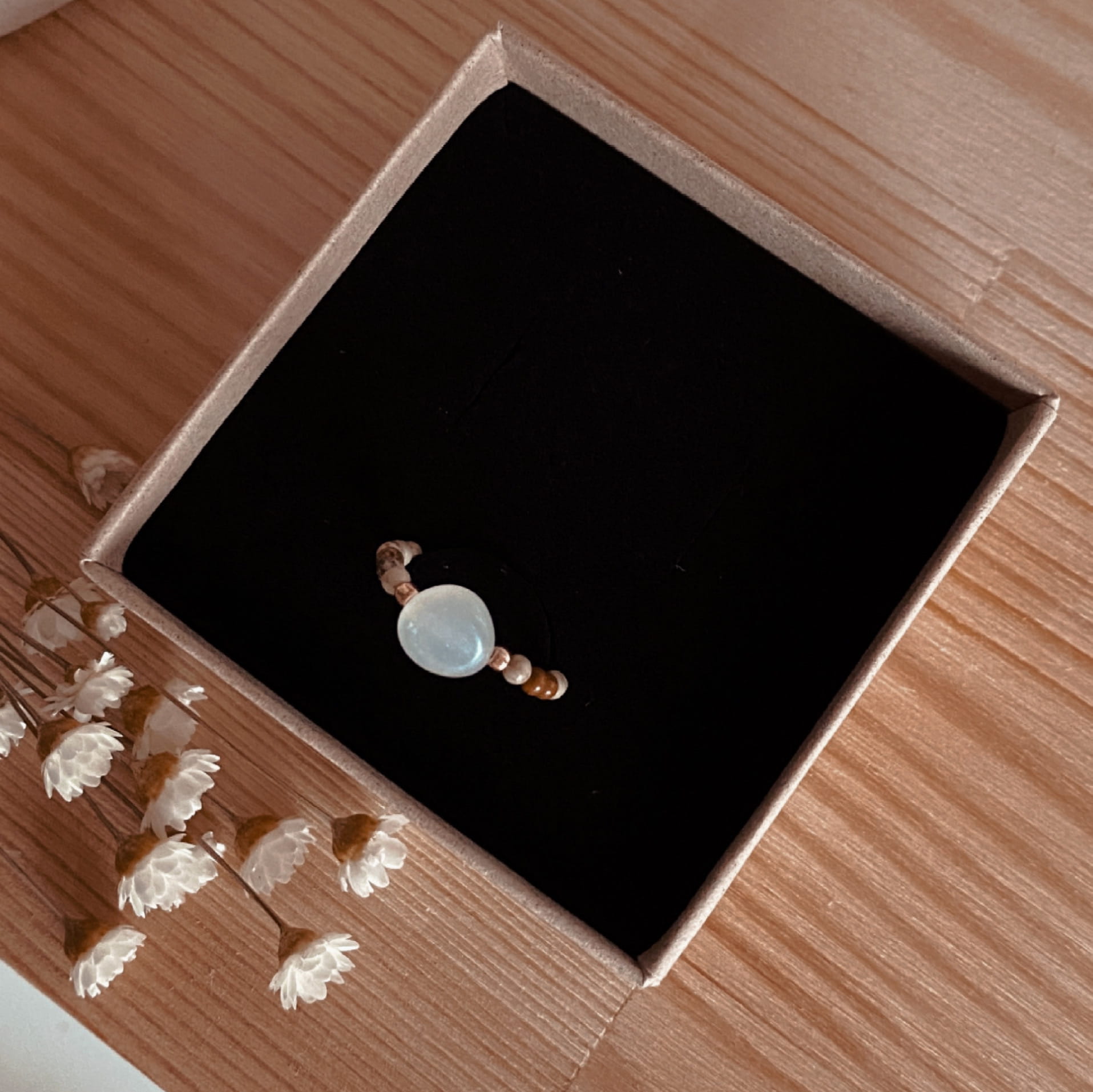 Pierścionek elastyczny z kamieniami | Moonstone | Kamień księżycowy