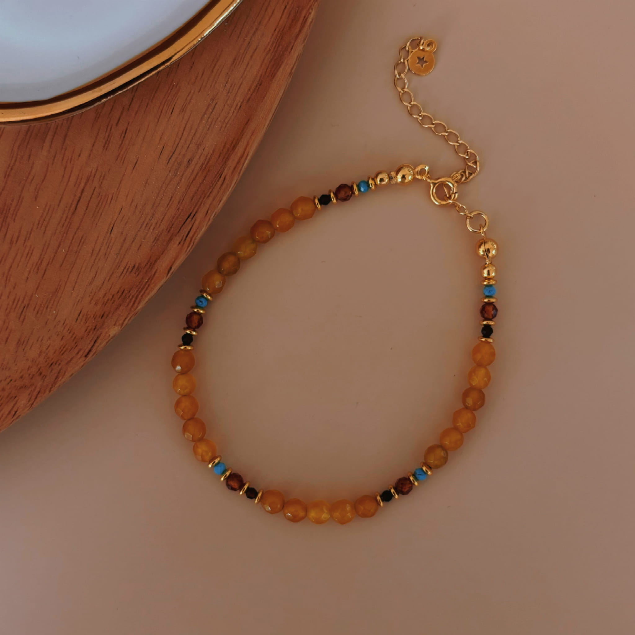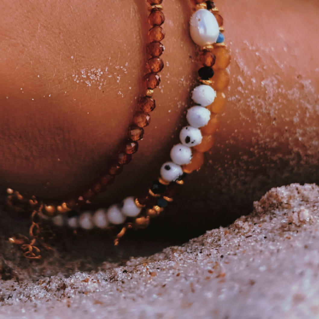 Połączenie kolorystyczne kamieni nawiązuje do słońca , wody , bursztynów znalezionych na plaży, beztroskich słonecznych dni.