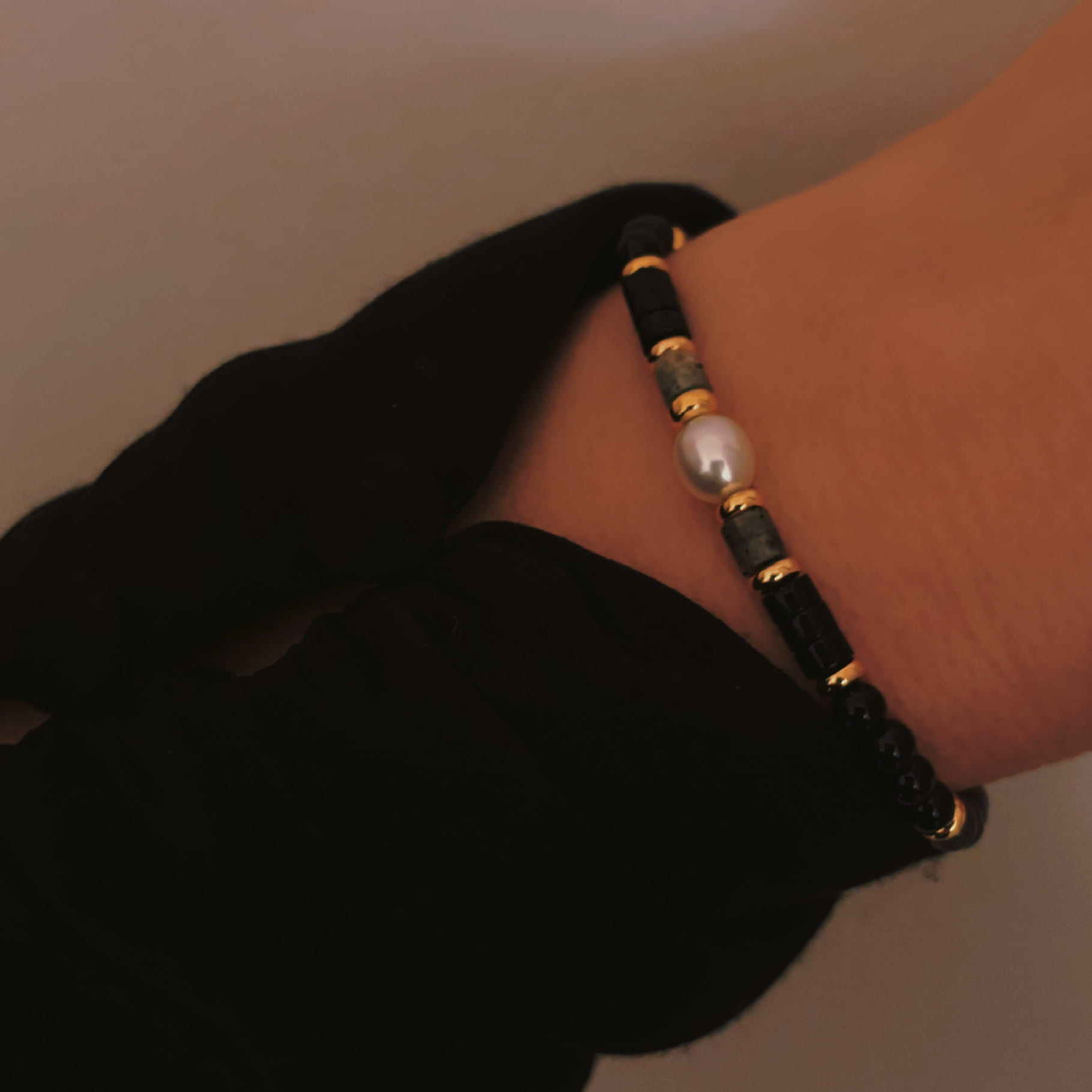 Bransoletka z czarnym Onyksem i Perłami | Midnight |