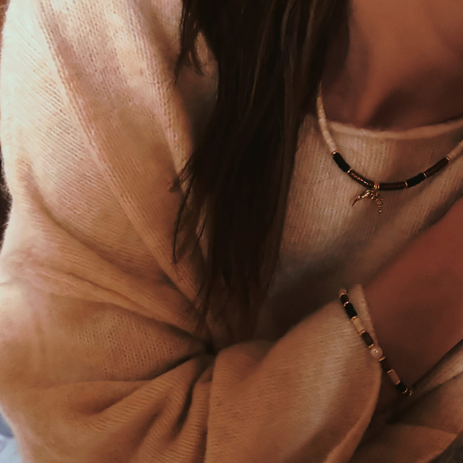 Bransoletka pięknie komponuje się z kilkoma modelami naszyjników dostępnych w sklepie online.