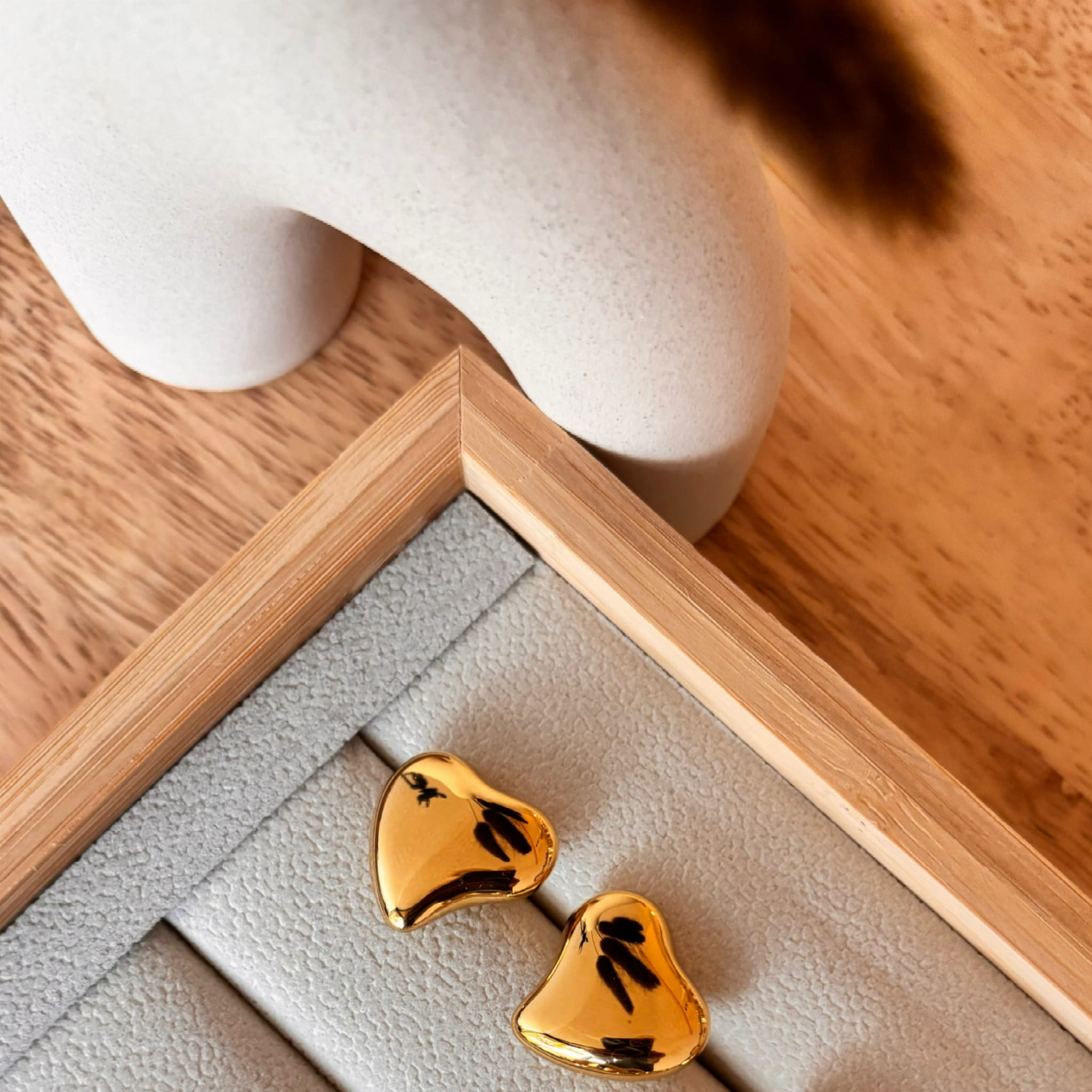 Kolczyki o kształcie nieregularnego serca wykonane ze stali szlachetnej pozłacanej.