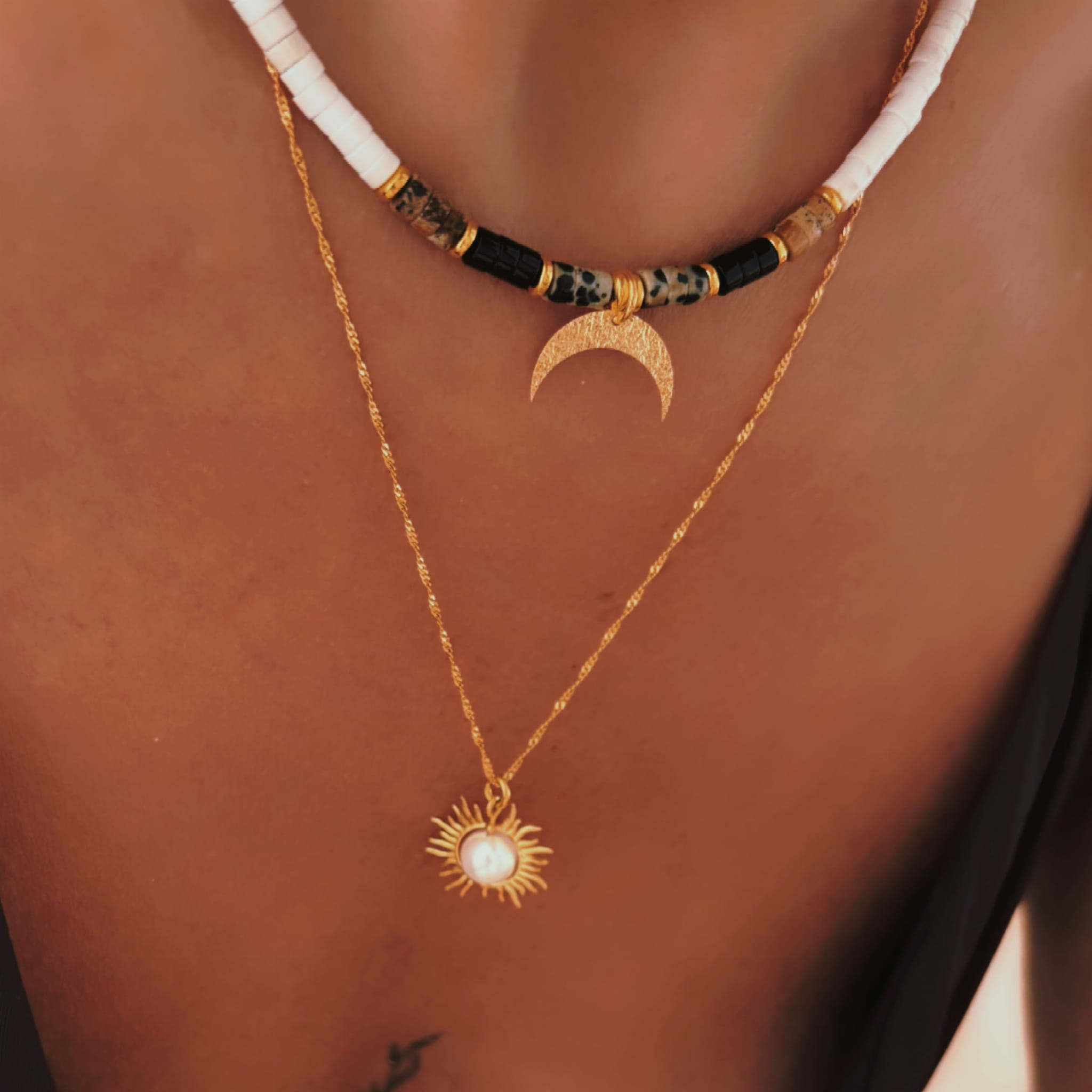 Naszyjnik ze słońcem i perłą