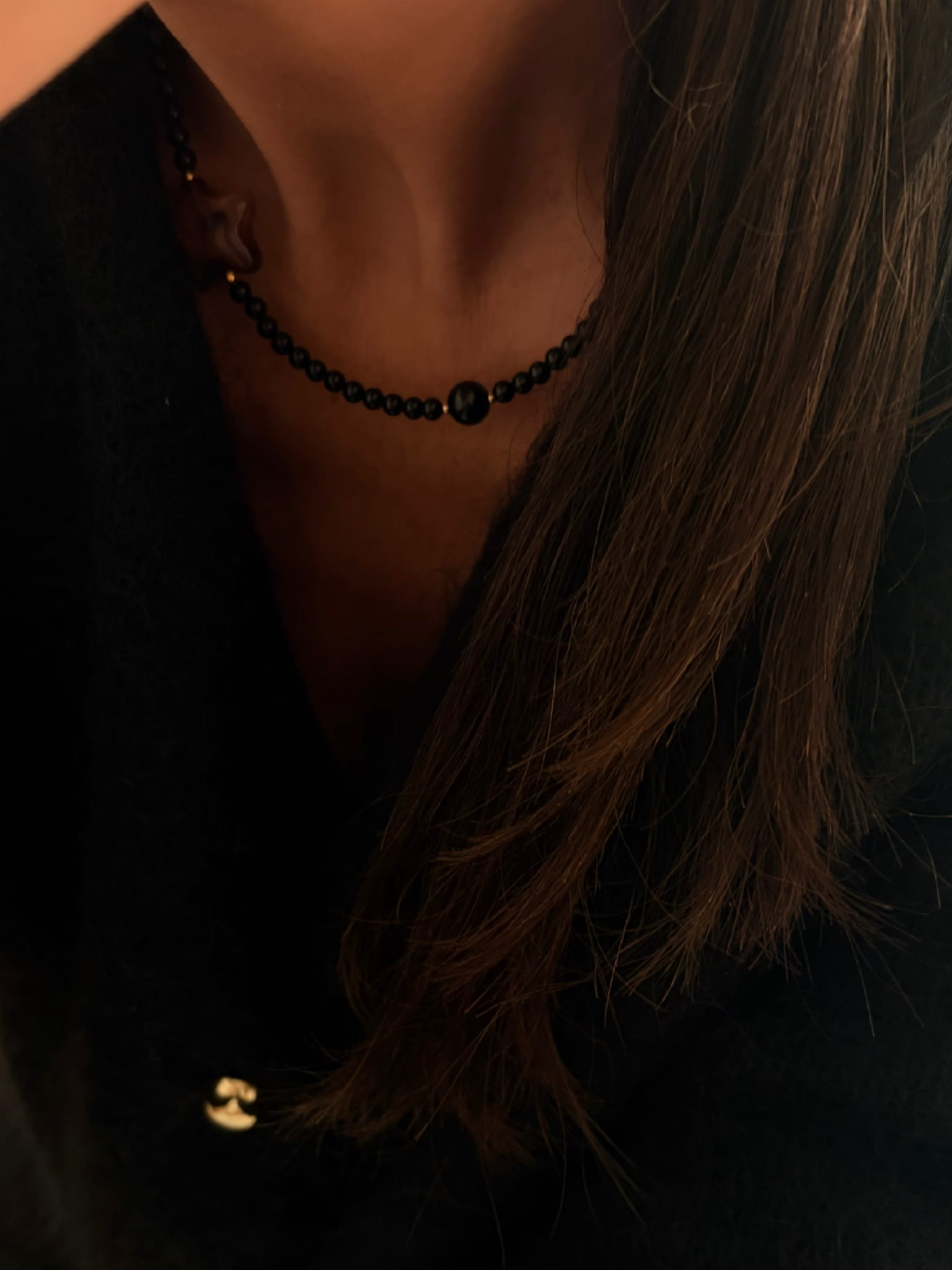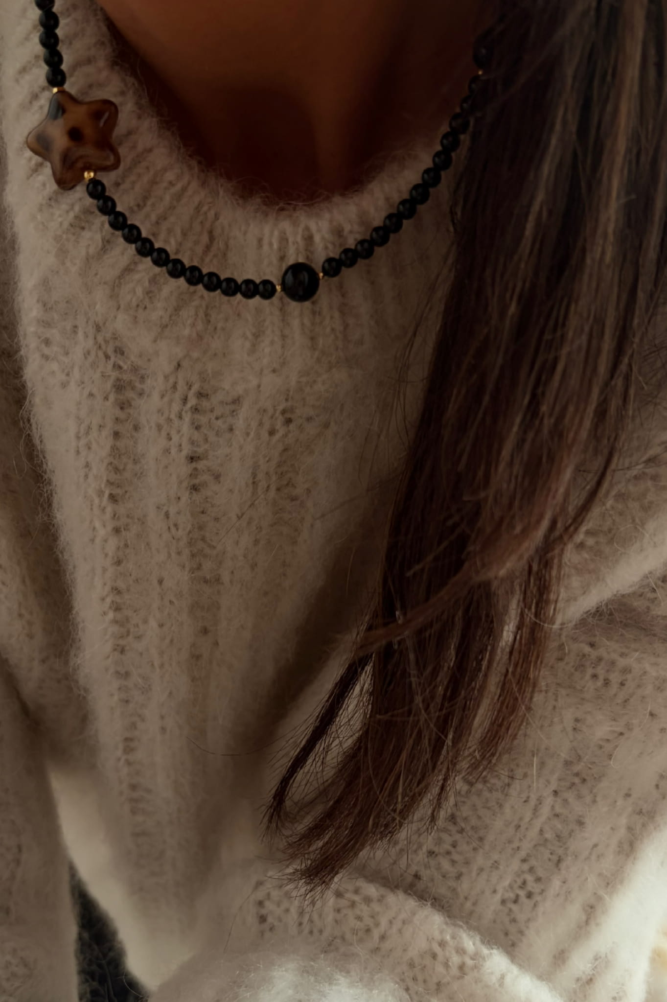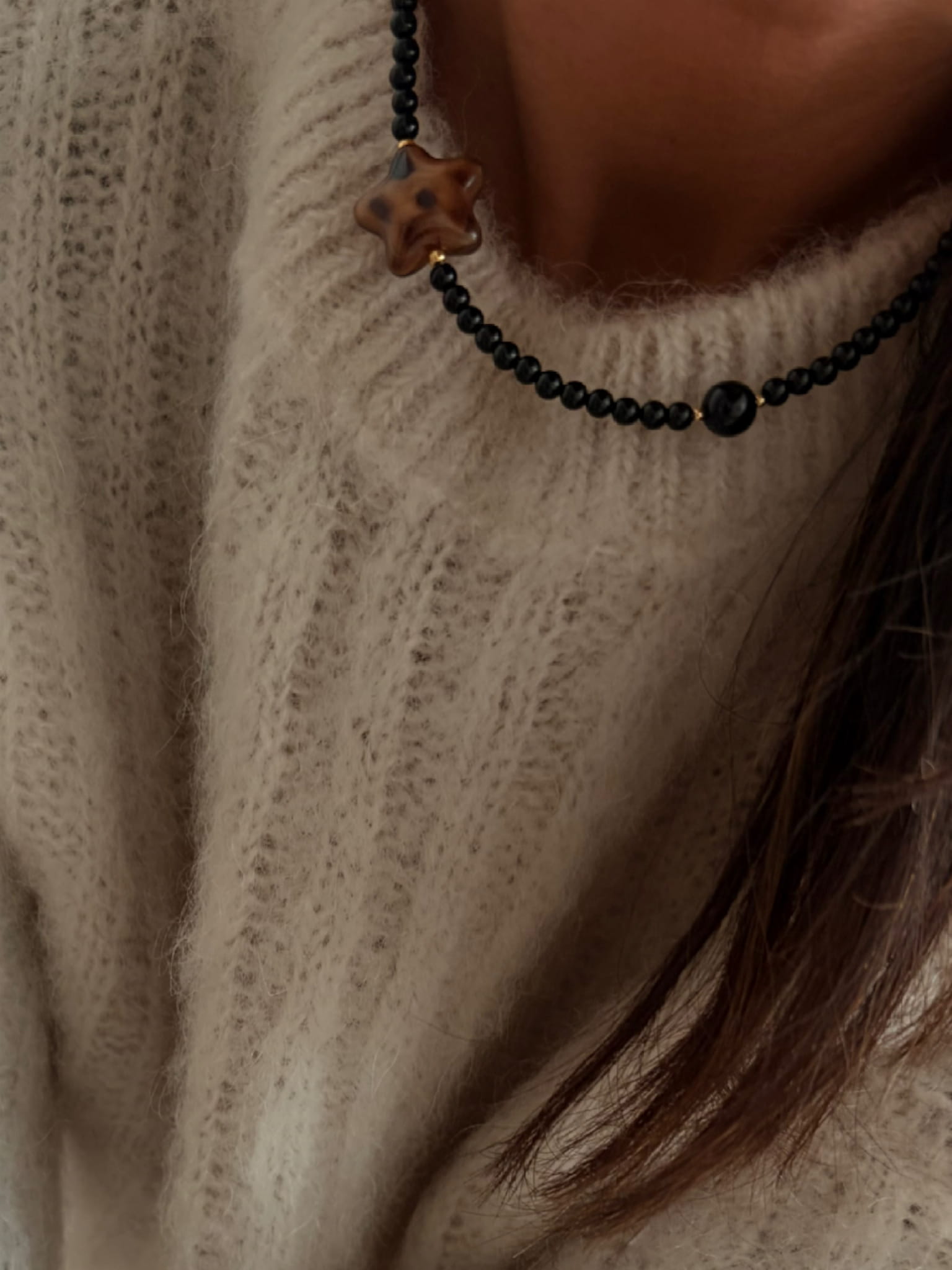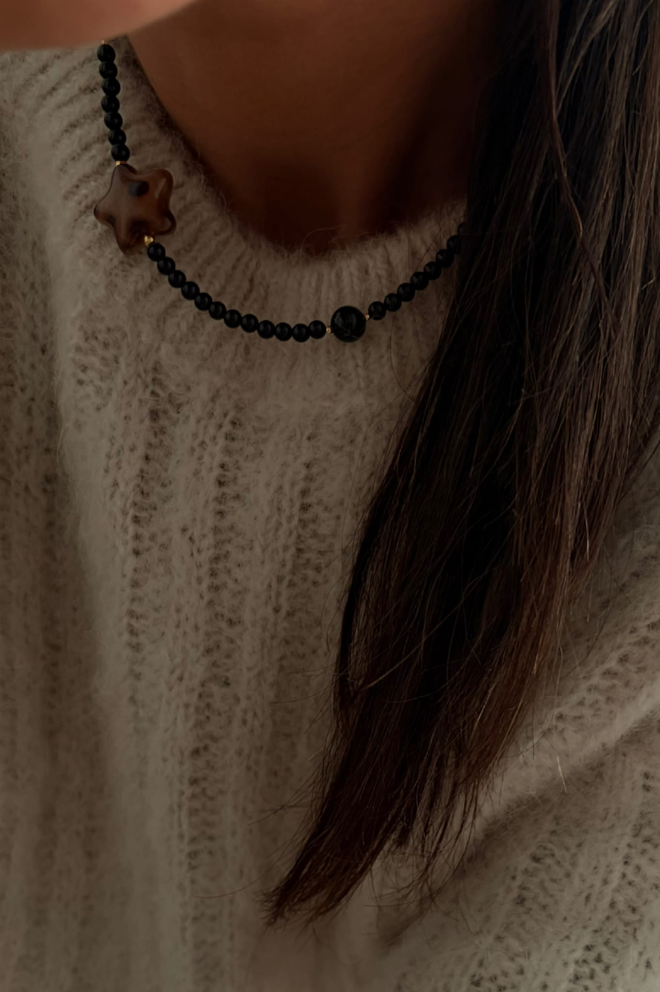 Minimalistyczny i uroczy naszyjnik z gwiazdką w plamki na bazie czarnego Onyksu w dwóch rozmiarach.