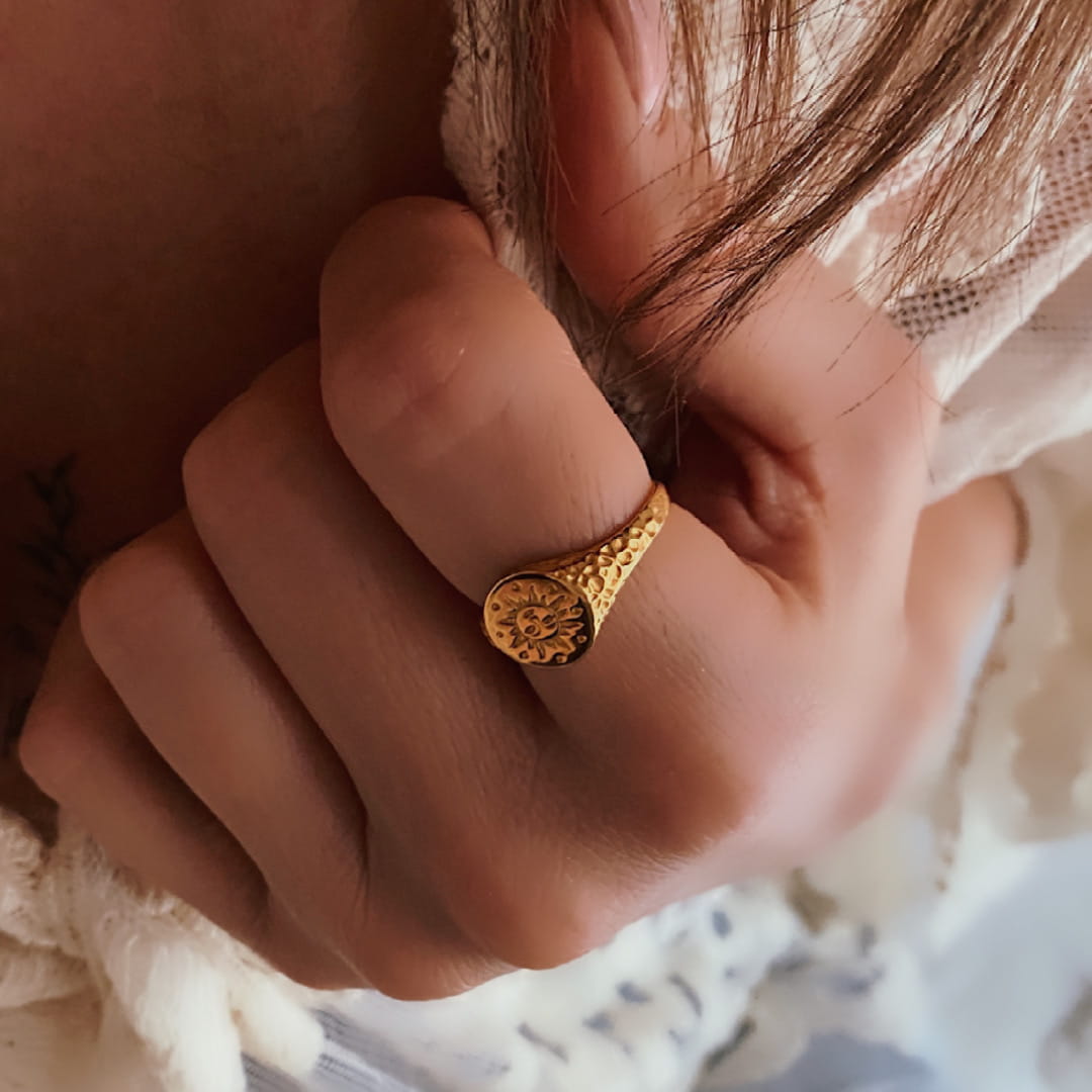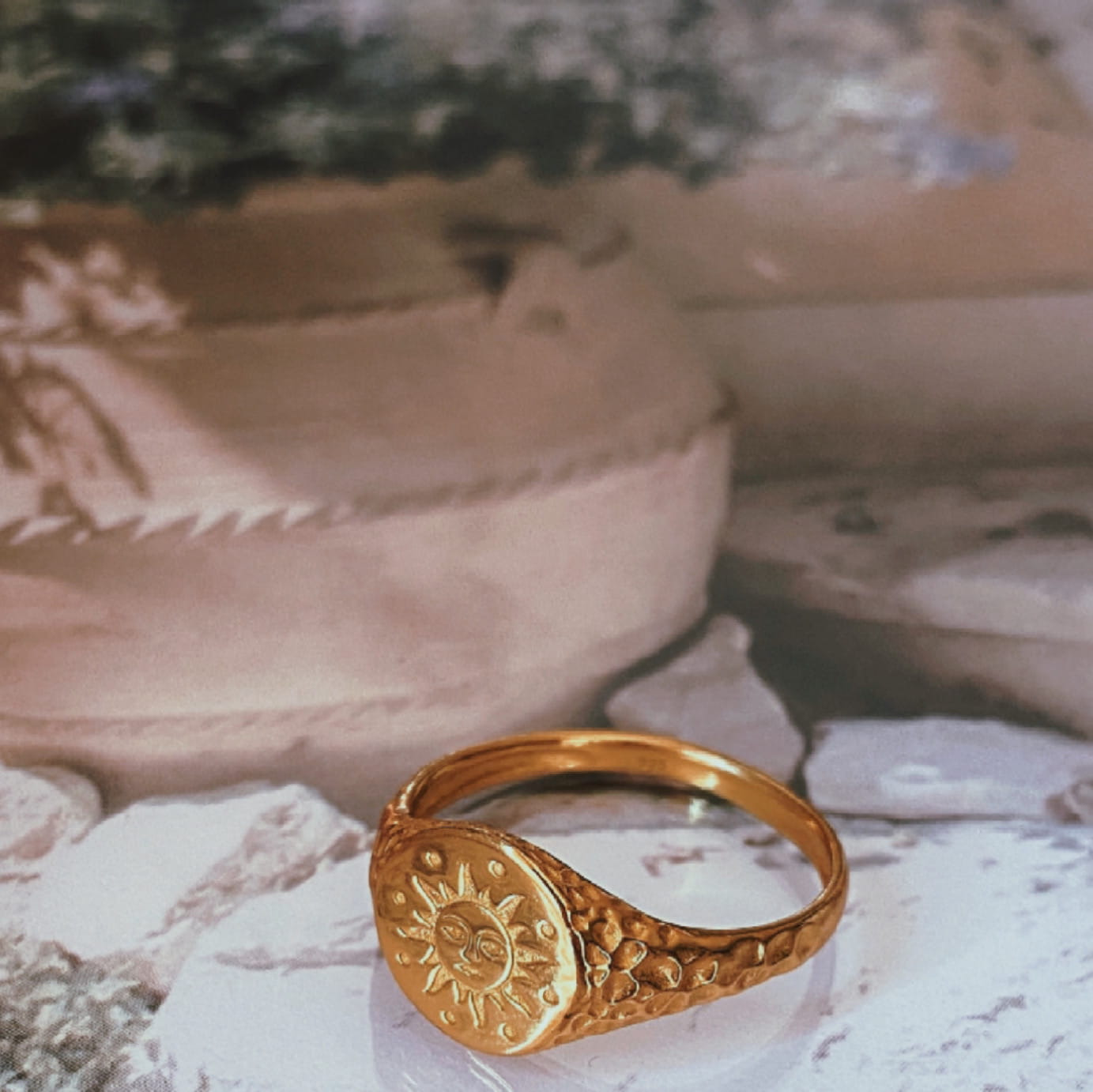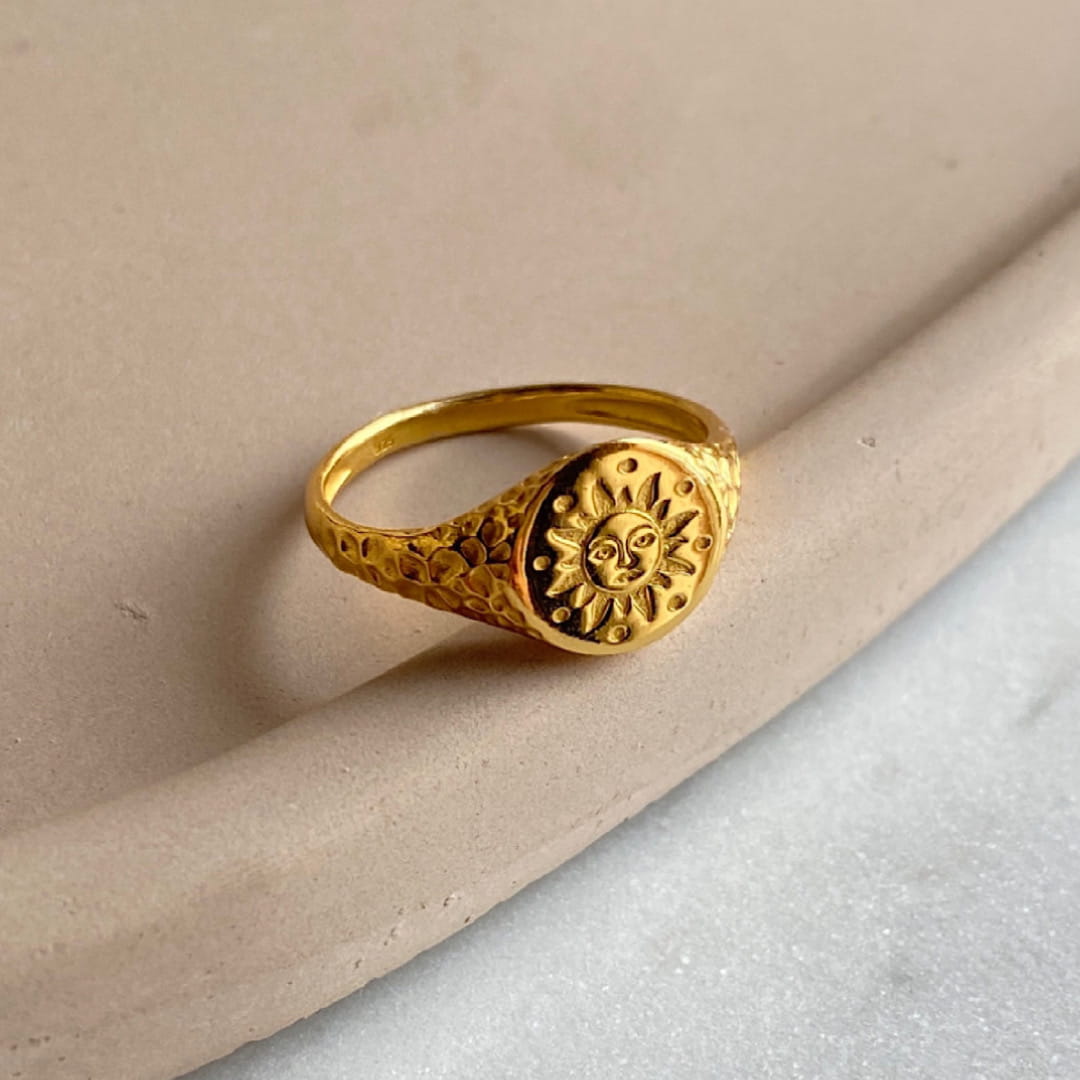 Pierścionek z motywem słońca skrywającym bogatą symbolikę.